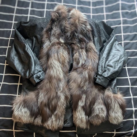 Erikoinen turkis-nahkatakki, vintage. Tätä on tullut paljon pidettyä, istuu hyvin.