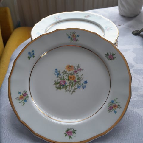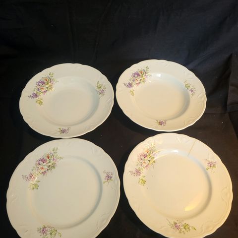 Arabian Liisa lautaset, 5 kpl ( halkaisija 23 cm ) Leiman perusteella vuosilta 1949-64. Ei käytönjälkiä, yhden lautasen reunassa pari pienen pientä kolhua, reunan alapuolella. Ikäänsä nähden nämä sievät lautaset ovat tosi hyvässä kunnossa.
