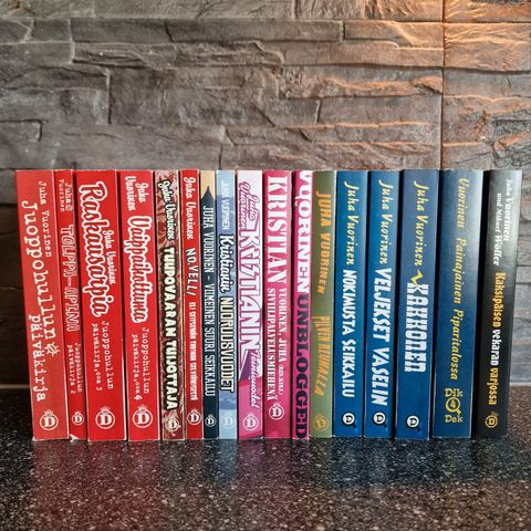 35 kappaletta Juha Vuorisen pokkareita, myydään kaikki yhdessä.