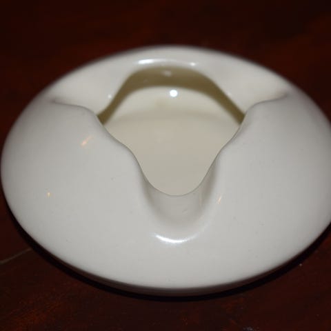 Sinisen tuhkakupin korkeus on 5 cm ja leveys 13 cm. Kuppi on ollut Arabian tuotannossa 1950- ja 1960-luvun vaihteessa. Leima puuttuu.