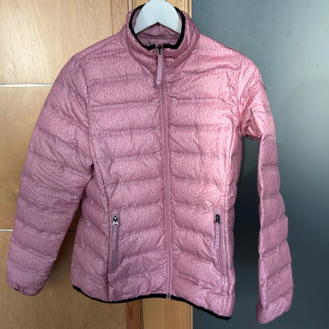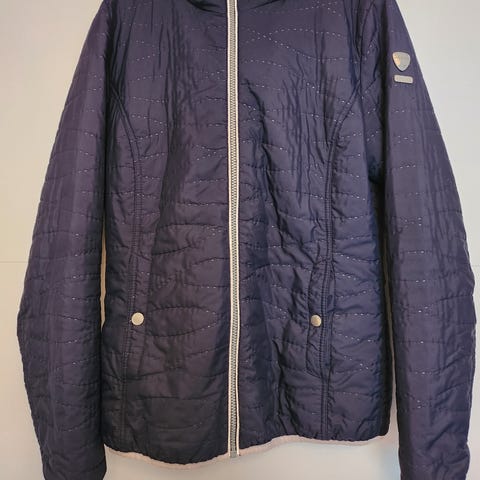 Luhtan erittäin vähän käytetty valkoinen kevyttoppatakki oranssihtavilla tehosteyksityiskohdilla. Koko 36.