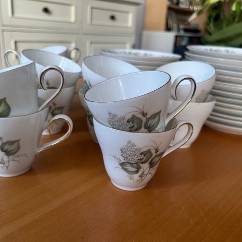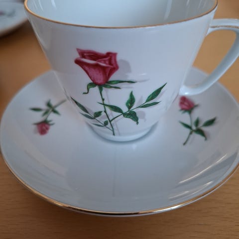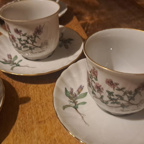 Myydään tyylikkäät ja hyväkuntoiset Bavaria Theresia kahvikupit, yhdessä kupissa halkeama.