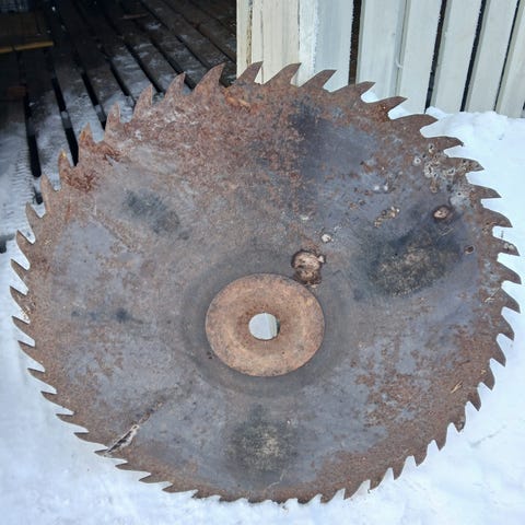 Kenttäsirkkeli. Rauta runko. 2 kunnostettua terää mukaan. Pöytä tarvii uudet vanerit. Lietso.