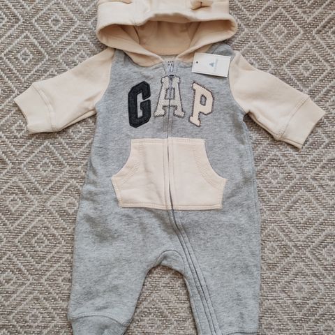Ihanan Gap-merkkinen hempeän vaaleanpunainen asu joka sisältää tumput ja tossut nepparikiinnityksellä. Koko 0-6kk eli noin 60cm