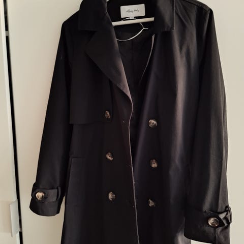 Erittäin kevyt, käyttämätön, mustapantterikuosinen naisten trenssitakki. Käännekaulus. Napilliset tampit olalla ja hihansuissa. Irrallinen vyö. Vyölenkit. Edessä vinotaskut. Sisäpuolella napillinen povitasku. Materiaali polyesteri.