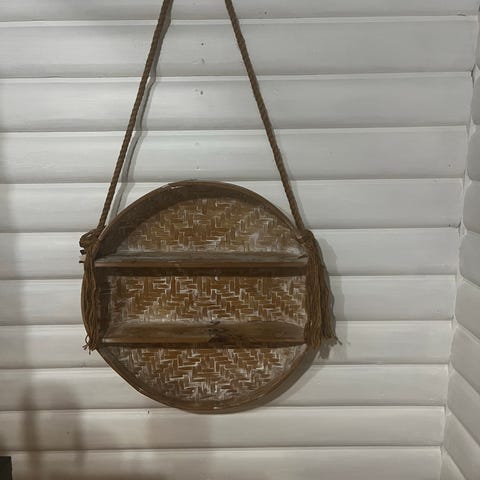 Myydään tukeva hylly. Seinässä ei ole koskaan ollut kiinni. Hylly on ollut tv-tasona ja hyllyssä reijät jalkojen kiinnityksestä ks. toinen kuva. Yksi kulma vähän repsottaa ks. kolmas kuva.