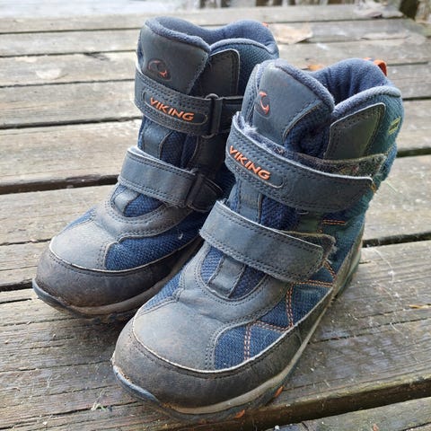 Myydään poikien siniset lyhytvartiset Viking kengät, koko 32.
