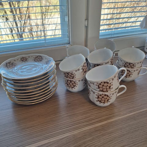 Hyvässä kunnossa oleva 1970-luvun kahviastiasto. Ei lohkeamia tai muuta jälkeä.