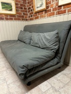 Vihreän sävyinen se alkuperäinen FUTON vuodesohva. Hieman elämää nähnyt, mutta toimiva kokonaisuus!