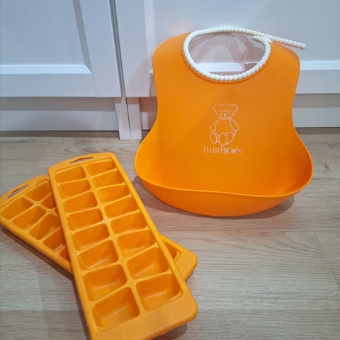 Myydään hyväkuntoinen Ikean Kladd Prickar ruokalappu.