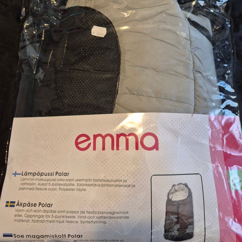 Lämpöpussi lasten rattaisiin. Pehmeä ja paksu. Aukot vyölle. Pari tahraa, muuten hyvässä kunnossa. Voi käyttää myös pulkassa. Lemmikkitön koti.