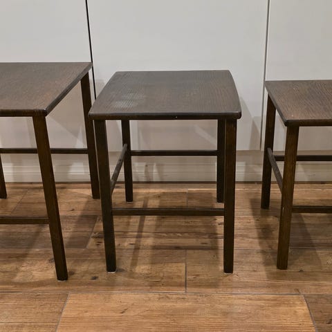 Nordic Furniture Group valkoinen sarjapöytä, maalattua peltiä. Kuvassa olevat pöydät ovat itselläni käytössä, toinen samanlainen sarja jonka myyn tarpeettomana, on avaamattomassa paketissa.