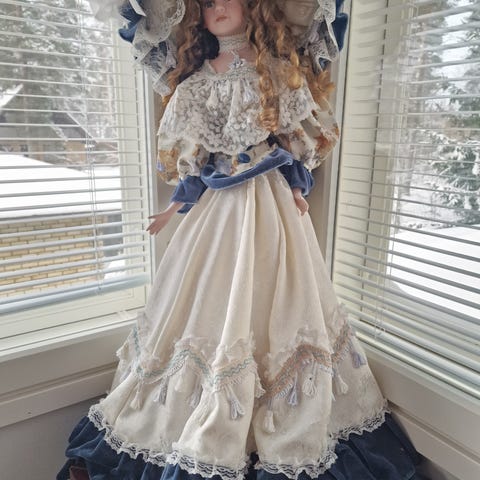 Posliininukke 40 cm Laura Grand collection. Uudet virkattut vaateet. Käsityö keräily koriste posliini nukkeja nuket.