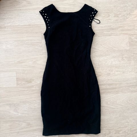 Zara Trafaluc merkkinen musta juhlava mekko. Naisten malliston juhlamekko koko xs. Tämä on hyvin vartalonmyötäinen mekko malliltaan. Selässä on vetoketjullinen kiinnitys mekon pukemista helpottamaan. Hyväkuntoinen juhlava kotelomekko mikä sopii hyvin jollekin pienelle naiselle päälle. Yksi timantti ja muutama pienempi hely on irronnut kauluksesta, mutta se ei haittaa kuitenkaan yleisilmettä. Tyylikäs pikkumusta mikä sopii hyvin johonkin juhliin.