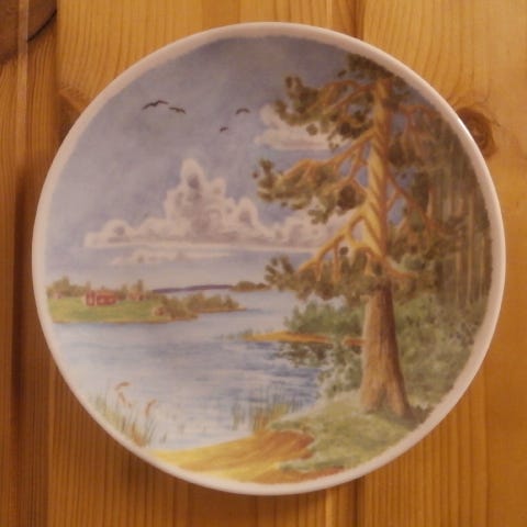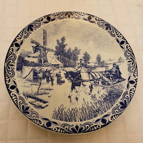 tämän seinälautasen sanoma on kiehtova ja kunto erinomainen vaikka metallinen pidike onkin jättänyt taakse miniruostejäljen.