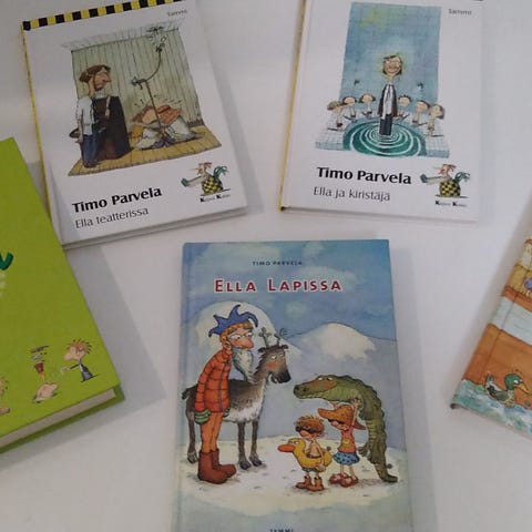 Ella ja Pate, sekä Ella yökoulussa. Timo Parvelan, 2001 v. Painokset. H. 3e kpl tai 2 kpl yht. 5e.