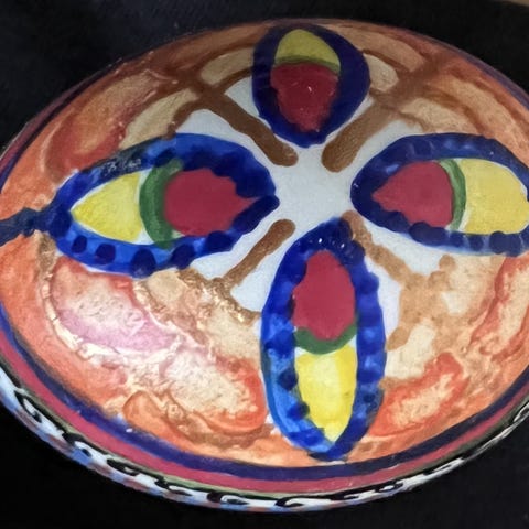 a decorated egg from my teenage years. Maybe a nice Easter gift or a neat decoration. I'm selling these because otherwise they sit in their case doing nothing. Pickup: 5/piece or three for 13. (postal fee 10/egg)