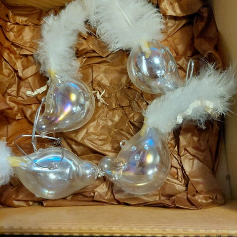 Uudenveroiset, tarralliset lasilinnut. Isomman korkeus noin 10cm, pienemmän noin 6cm. Nouto Joensuu tai postitus.