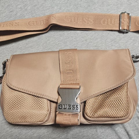 Myydään uudenveroinen vaalean roosan värinen Guessin pieni olkalaukku. Sisällä korttitaskut.