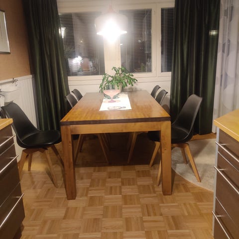 Tarpeeton pöytä ja 2 x tuolit, vaikka opiskelijalle tai pieneen keittiön ruoka/saareke pöydäksi, toimisto pöytä