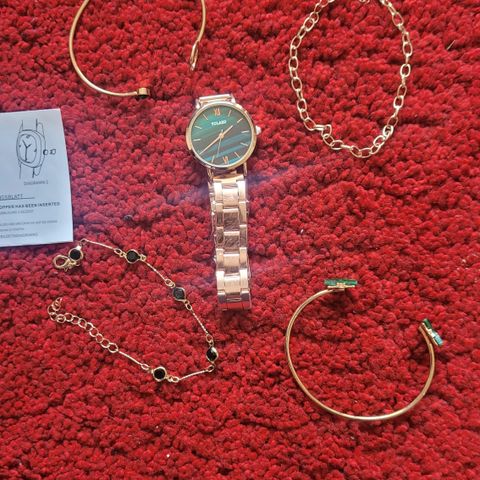Myydään erilaisia koruja sekä käyttämätön rannekello.