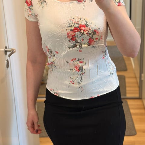 Vero Moda merkkinen musta kukallinen t-paita. Naisten malliston lyhythihainen kukkapaita kokoa xs. Tämä on vähän lyhyt paita pituudeltaan. Kiva lyhyt kesäpaita. Käy tämä myös hyvin villatakin alla kylmemmällä ilmalla. Käytetty paidan kunto. Kiva napapaita mikä sopii hyvin jollekin pienelle naiselle päälle.
