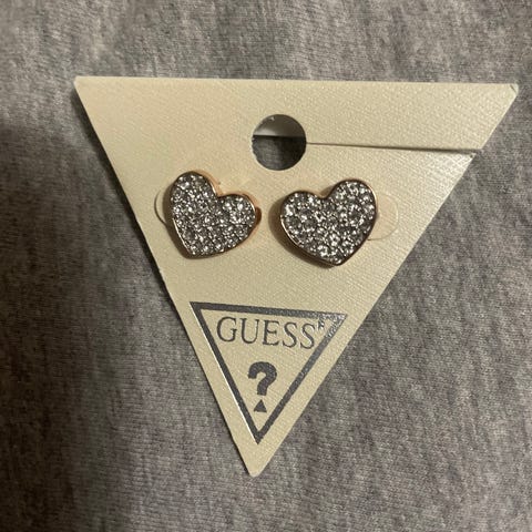 Kauniit hopeanväriset Guess kaulakoru ja rannekoru kirkkailla kivillä. Kaikki kivet tallella. Kaulaketjun pituus säädettävissä. Ketjun koko pituus n. 46cm. Riipuksen korkeus n.3cm.
