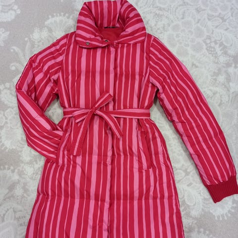 Myydään marimekon Tineke untuvatakki. Ostettu vuonna 2016, kunto erinomainen luukuunottamatta pientä reikää takin etuosassa. Reikä ei vaikuta takin käyttöön. Untuvat silti pysyvät sisällä vai kosmeettinen haitta. Tämä otetaan hinnassa huomioon. Sijaitsee Helsingissä.