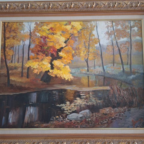 Kuvassa näkyvä taulu Somme Suvanto (56 x 66, öljy kankaalle). Postitus onnistuu.