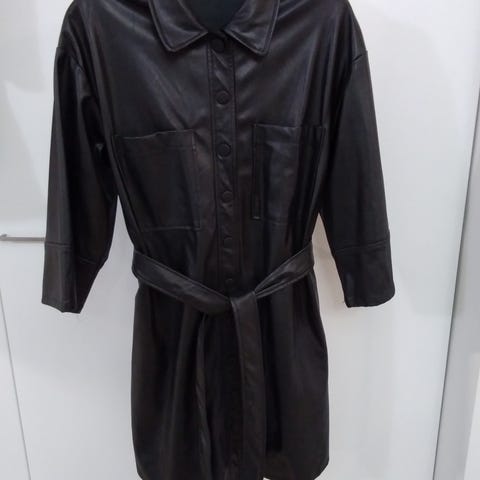 Nilkkapituinen unisex-nahkatakki, levenevä helma. Koko s, vastaa pikemminkin kokoa m. Kai-kai n.50cm, vyötärö päältä mitattuna 44cm. Kokonaan vuoritettu, isot taskut. Saksasta joskus tilattu.