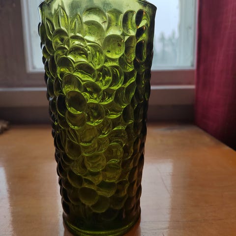 Tumman violetti Nuutajärven Näppylä -lasimaljakko.