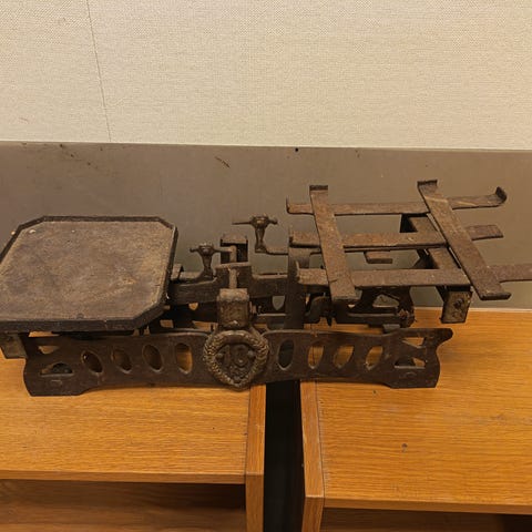Vaaka Nordqvist arviolta noin 1930 luvulta. Ajan patinaa on mm. edestä maali alkaa lohkeilla. Nordqvist merkki edessä.