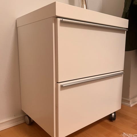 Pieni muovinen laatikosto kolmella laatikolla.