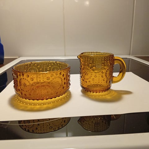 Kartio sarjan lasiset kermakko ja sokerikko, riihimäen lasi, design Nanny Still. Täysin moitteettomassa kunnossa. Nouto tai postitus.