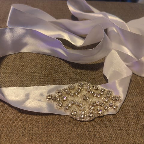 Timantein koristeltu vyö. Ei päässyt käyttöön joten kaikki kivet varmasti tallella. Pituus 270cm, timanttiosan korkeus 3cm