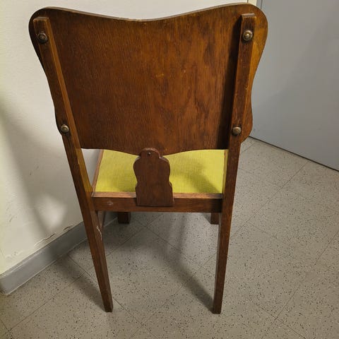 Erilaisia vanhoja tuoleja (kuvissa näkyvät valkoinen ja käsinojallinen tuoli tammea, yhteensä 8 kpl + ovaalinmuotinen tammipöytä samaa sarjaa). Lisäksi muita kuvien tuolimalleja useita kappaleita. Kuvan pöydän kanssa samaa sarjaa kirkkaanpunaisella kankaalla verhoiltu tuoli (useita kpl). Tuolien hinnat 10-20 euroa/kpl. Pöytien 50 euroa/kpl.