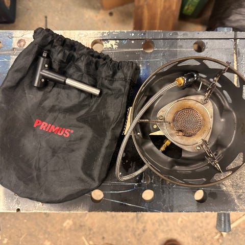 Isompi litran pullo bensakeittimeen. Sopii Primuksen, Optimuksen ja Trangian pumppujen kanssa. Uuden hinta on 30 .