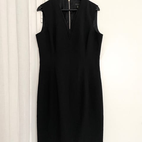 Myydään Ted Bakerin klassinen musta villakangas- / puvunkangasmekko. Imarteleva kotelomalli, joka ei kuitenkaan ole aivan tiukka istuvuudeltaan. Ted Bakerin kokoa 2 (EU38). Mekko on ollut kahdesti käytössä, kunnossa ei mitään moitteita. Takana pieni halkio ja kultainen vetoketju niskassa. Sopii niin toimistoon, juhliin kuin vaikka hautajaisiinkin.