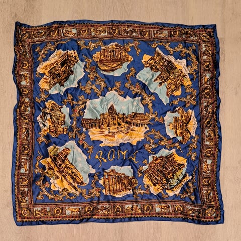 Viisi vanhaa matkamuistohuivia. Ovat pääosin ehjiä ja siistejä. Käytettyjä, mutta edelleen täysin käyttökelpoisia. Huivien koot noin 70-75cm × 70-75cm. 4 euroa kappale tai kaikki yhteensä 15 euroa.