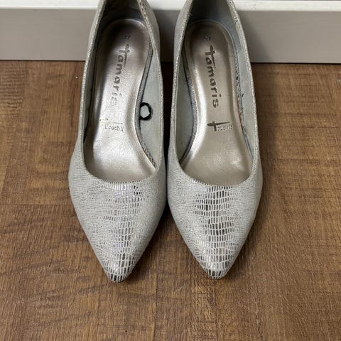 Ihanat musta-kultaiset Tamaris paljettikorkokengät koossa 37. Kerran olleet sisätilassa jalassa, ulkona ei ole kävelty koskaan. Kunto siis kuin uusilla. Korko n. 9cm. Laatikkoa ei ole enää tallessa.