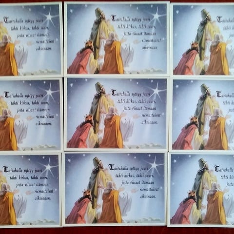 1-os.Joulukortti maisema,lintu ym. Avaamaton 25 kpl:n pakkaus. 5e. 2 nippua (50 kpl)10e.+postitus 4.05e