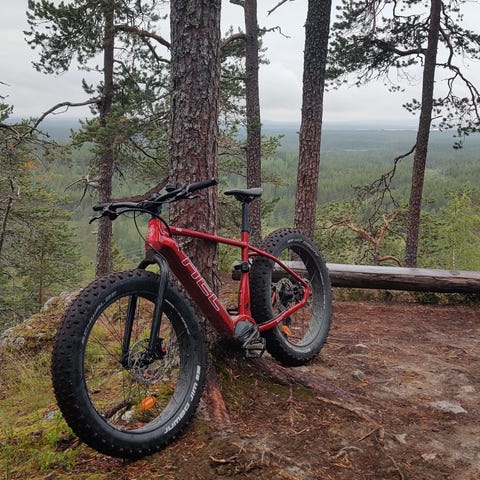 Thule Euroride 943 pyöränkuljetusteline, kätevä ja nopea kiinnittää vetokoukkuun ja tilaa jopa 3:lle pyörälle vaikkakin 2 pyörää kulkee parhaiten. Yksi kiinnityskohta renkaille tehty läskipyörää varten. 4.5 tuumainen rengas menee kiinni niihin tosi napakasti. Perus kiinnikkeissä menee pienempi rengas, ainakin 2.8 rengas menee vielä justiinsa kiinni ja siitä kapeammat.
