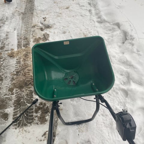 Hyvä hiekoituskärry. Sopii myös kalkin ja lannotteiden levitykseen nurmikolle. Hyvä työntää!