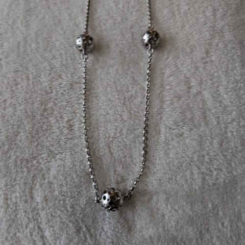 Liisa Vitalin hopeinen Leppäkerttu kaulakoru. Kaulakorun pituus noin 50 cm, korussa 5 palloa. Korun pallojen halkaisija 1,5 cm. Rasia mukana. Käyttämätön.