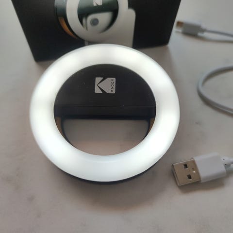 Ringlightissa on myös bluetooth nappula jolla voi ottaa kuvan.