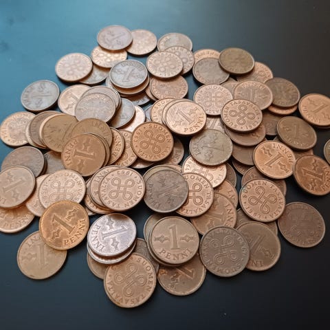 1 pennin kolikot 3 kpl vvv. 1965, 1968 ja 1969