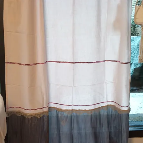 Uudet vaalean harmaat/(hento lila) lenkkiverhot, läpikuultavaa kangasta, leveys 110 cm, pituus lenkkeineen 240 cm, 65% polyesteriä ja 35 % puuvillaa. 5 euroa/kpl