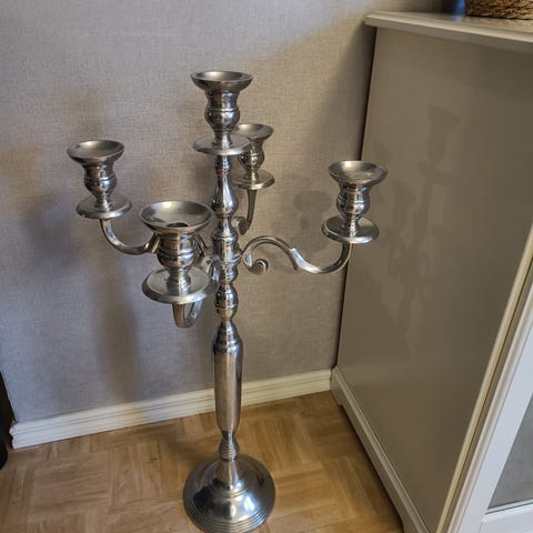 Upeat, korkeat metalliset & rustiikkiset kyntteliköt. Korkeus 60 cm ja ympärys leveimmästä kohdasta 37 cm.