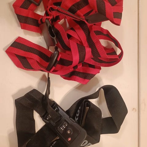 Kuvanlainen lukittava hihna matkalaukkuun.Toimituskulut lisätään.