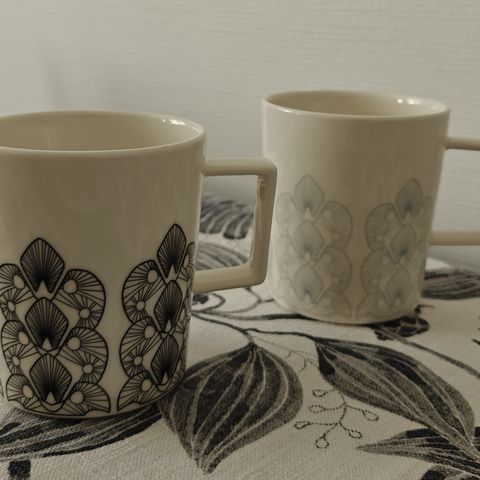 Vimman neljä mustavalkoista lettimukia (3,5 dl). Vähänkäytetyt, erinomainen kunto.